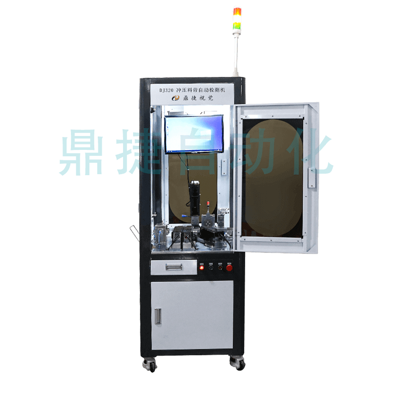 沖壓料帶自動檢測機設備,進行自動沖壓的設備,沖床下方有自動接料裝置,同時兩側有自動收放料卷裝置,主要是用于金屬片的沖壓成型;該設備裝有激光檢測裝置,能自行檢測成品沖壓質量,成型失敗時自動排除。